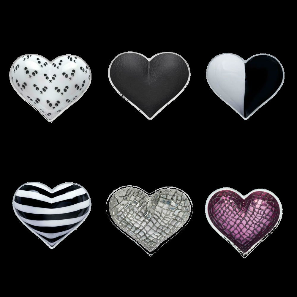 | Color | Black Leather Heart, Croco Plum Heart, Croco Silver Heart, Happy Black & White Cookie Heart, Happy Black & White Stripe Heart, Panda Heart |