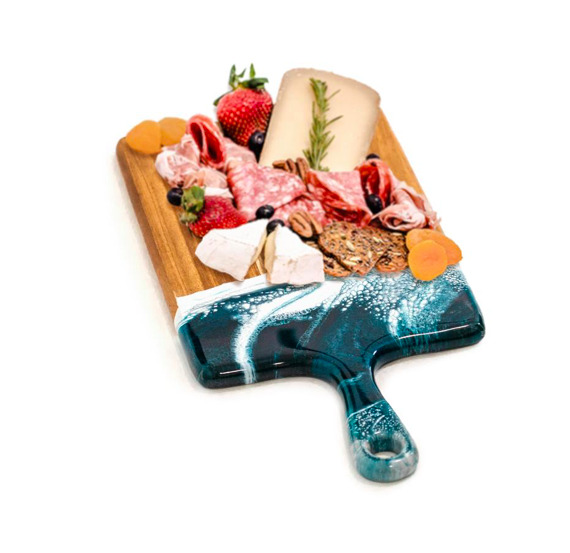 These pieces blend gorgeous Acacia hardwood and an eco-friendly epoxy to create a one-of-a-kind piece of serveware for your home. These cheese boards are perfect for serving a group of 2-4 people.