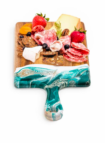 These pieces blend gorgeous Acacia hardwood and an eco-friendly epoxy to create a one-of-a-kind piece of serveware for your home. These cheese boards are perfect for serving an intimate group of 1-3 people.