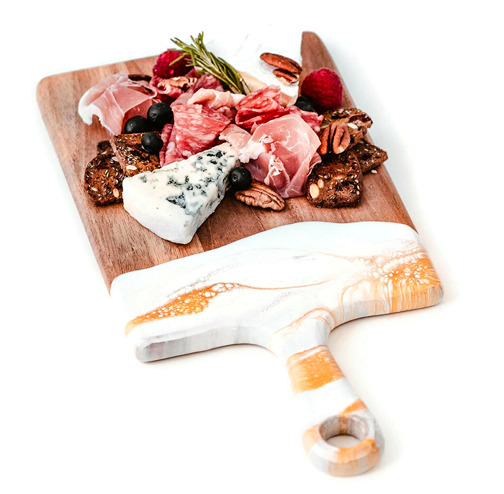 These pieces blend gorgeous Acacia hardwood and an eco-friendly epoxy to create a one-of-a-kind piece of serveware for your home. These cheese boards are perfect for serving an intimate group of 1-3 people.